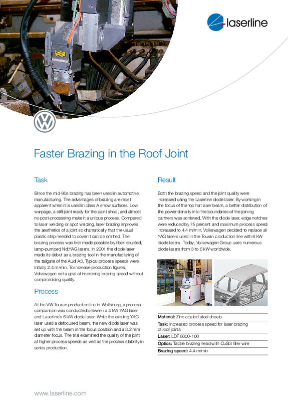 Faster brazing in the roof joint