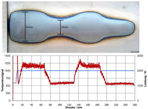For the simple integration in hardening plants, for example, the optic can be equipped with a 90° coupling unit. Through this coupling unit, an optical pyrometer can also be integrated for temperature controlled power control at changing track widths.
