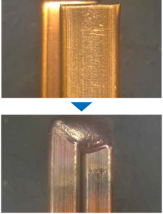 In addition to the high absorption of blue light, which makes it much easier to melt copper, the use of the intensity profile characteristic of diode lasers also contributes to the top-notch processing outcome. This focused beam profile ensures a stable melt pool, high beam quality and precise control of the laser parameters during the welding process. Furthermore, Laserline's proven diode laser technology allows the high laser power to be finely graduated within milliseconds, thus adapting it perfectly to the process requirements and optimizing the power density and laser energy input. This also helps reduce the formation of copper oxides and ensures stable processing despite material surface variations and surface tension effects. The weld seams created during welding copper are extremely clean and very smooth – regardless of the surface quality of the material before the welding process was begun. They have excellent electrical conductivity and produce little to no spatters on adjacent areas of the material. This results in minimal rework and reduced contamination risks for surrounding electronic components.