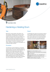 MATEX PM, a company from Pilsen in the Czech Republic, offers job-shop solutions for various metal applications using diode lasers. Together with Laserline, MATEX PM has, for example, crafted a method that allows laser hardening to protect a rope drum made from cast iron with a diameter of two meters and a weight of 2.5 tons from suffering excessive wear when in use.